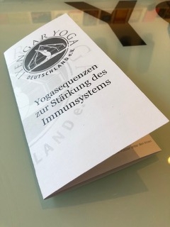Durch unsere Übungspraxis haben wir im Iyengar Yoga die Möglichkeit positiv Einfluss auf unseren Körper und sein Immunsystem zu nehmen. Viele von euch haben sicher bereits die Erfahrung gemacht, dass besonders Umkehrhaltungen, unterstützte Vorwärtsstreckungen und unterstützte Rückwärtsstreckungen vor Erkältungen schützen können. Im Downloadbereich haben wir einen Flyer mit zwei Sequenzen zur Stärkung des Immunsystems hinterlegt. Der digitale Flyer lässt sich gut auf dem Computer/Tablet oder Smartphone benutzen, da man in den PDFs zoomen kann, um sich die Asanas im Detail anzuschauen. Er kann aber auch ausgedruckt werden. Wenn der Flyer beidseitig ausgedruckt wird, funktioniert er als zweifach längs gefalteter Flyer. Es wäre schön, wenn die Sequenzen unter den Yogaübenden weite Verbreitung finden, da wir die Kenntnis über die Haltungen bzw. deren Praxis derzeit für hilfreich erachten. Wenn ihr möchtet, könnt ihr die Flyer per Mail an eure Schüler_innnen und Freunde verschicken, bzw. ausdrucken und in euren Yogaschulen auslegen. Wir wünschen euch viel Spass beim Üben – bleibt gesund! Euer Vorstand Barbara, Claudia, Elmar, Hermann und Sigrun